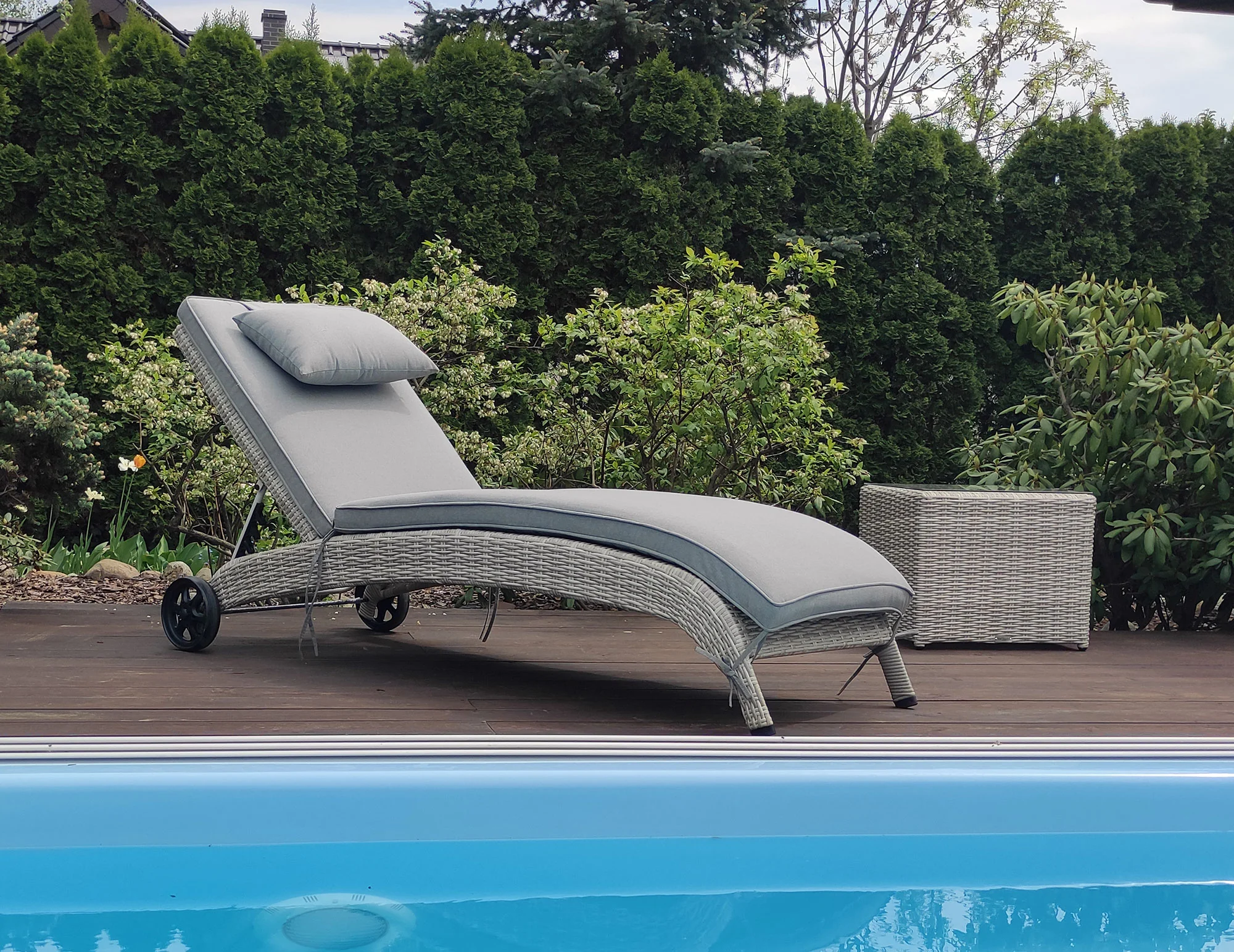 Leżak ogrodowy na kółkach z regulacją oparcia