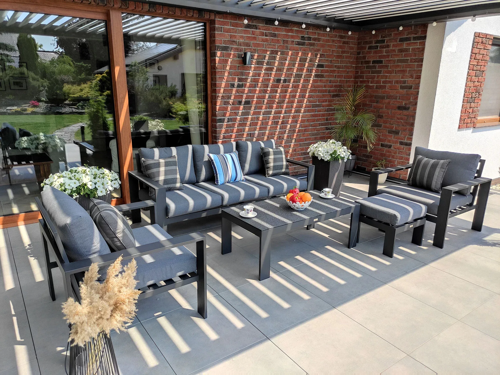 Wybrałem go do oferty, bo aluminium antracyt w tym formacie sprawdza się lepiej niż tworzywo lub rattan — rama jest lekka, fotele przestawisz jedną ręką, a po zimie nie wychodzisz z garażu z odłupanymi lakierami. I przez lata wygląda tak samo.